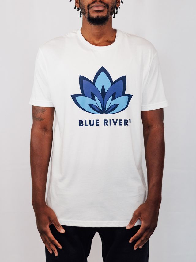White and Blue Lotus Short Sleeve Each T-Shirt