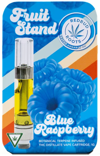 Blue Raspberry1g Fruit Stand carts combine high potency distillate with all-natural botanical terpenes. Each unique flavor has a delightfully bright fruit profile, providing a unique spin on the flavored vape cart, all while maintaining high potency levels. This gives a great tasting vape at a great value. This flavor is typically designed to mimic the sweet and tangy taste of blue raspberry, often described as similar to a blue slushie drink.